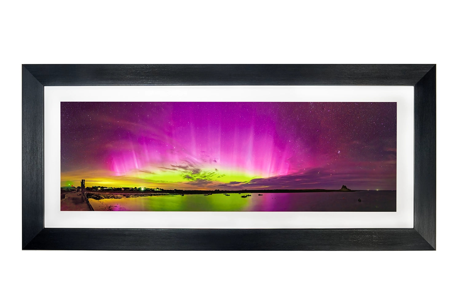 An incredible night on Holy Island. Waiting alone on the Beach for a Meteor Storm, when out of the blue, the sky exploded with one of the best Auroras I have witnessed. I raced around to the Pier so I could fit this huge phenomenon into a Panoramic image. A night to be remembered.
